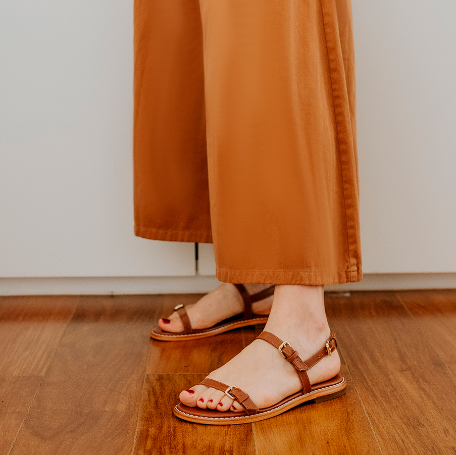 Em parceria com a Roberta Palhares, desenvolvemos a rasteira mais confortável e charmosa que você pode ter! A Rasteira Marie Caramelo Anas é o nosso modelo minimalista e versátil, com fivelas delicadas e palmilha que se molda ao seu caminhar, vai te acompanhar da feira ao baile.