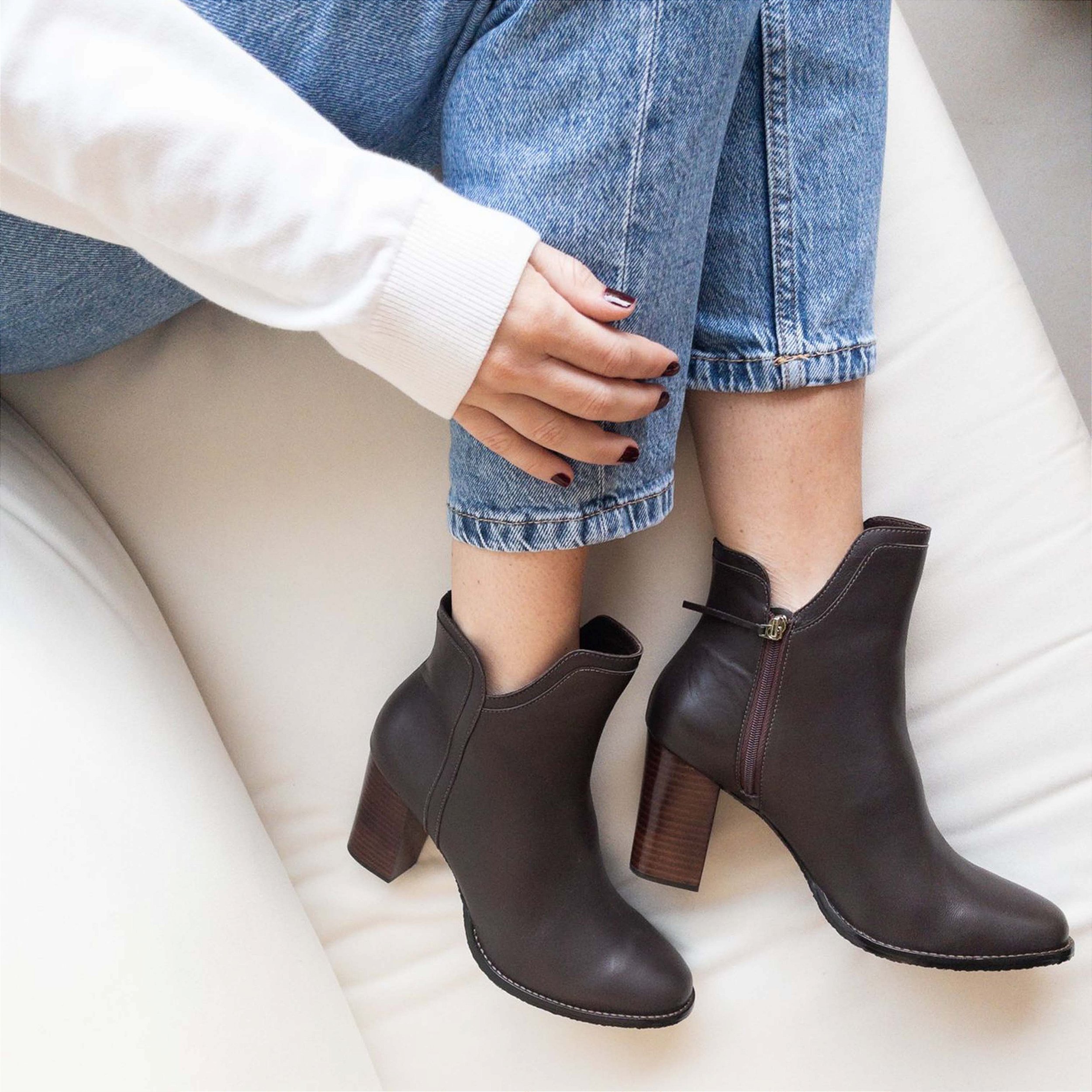 Bota Salto Couro Café Anas, com um couro café bem macio e um salto confortável, a bota salto couro café é um must have. Para dias não muito frios, pode ser usada com vestido ou saia midi deixando os detalhes dos recortes aparentes. Quando a temperatura cair, use com uma calça flare ou calça curta. Seu bico arredondado fica à mostra sem pesar na produção. Recomendamos não usar com meia muito grossa. Caso prefira a meia mais grossa, opte por um tamanho maior na hora da compra
