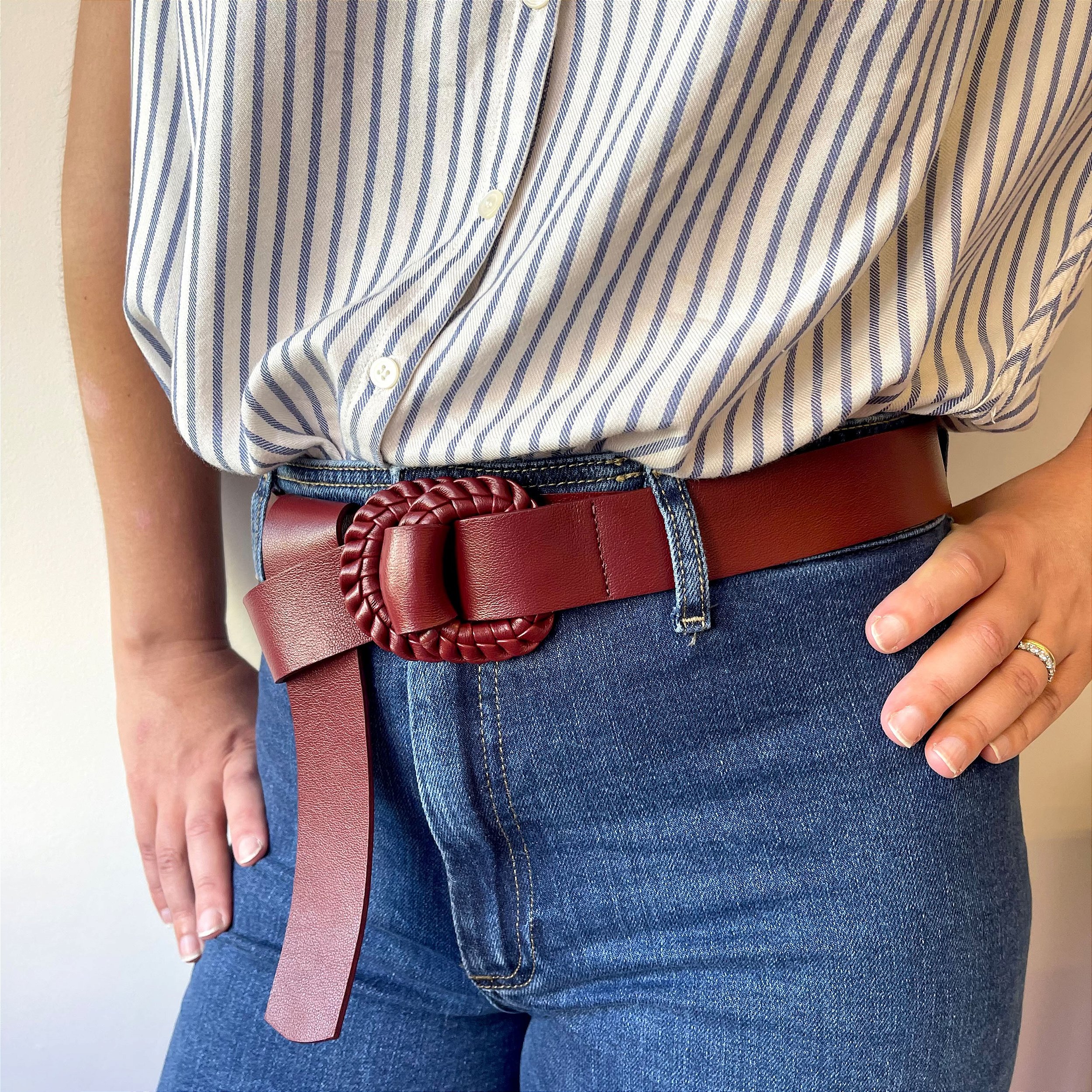 O Cinto Fivela Trançado Bordô Anas é versátil e perfeito para compor looks com vestidos soltos ou calças. Pode ser usado para acinturar as peças mais largas ou dar bossa a calças mais simples. Possui duas fivelas trançadas de couro podendo dar um nó na tira deixando a peça ainda mais charmosa.