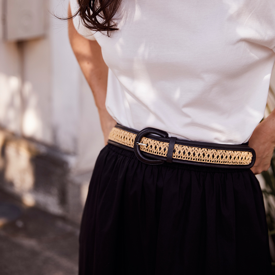 O Cinto Positano Preto Anas é versátil e perfeito para compor looks com vestidos soltos ou calças. Pode ser usado para acinturar as peças mais largas ou dar bossa a calças mais simples. Possui uma fivela forrada de couro, acabamento em tressê de ráfia e fechamento ajustável em 5 níveis.