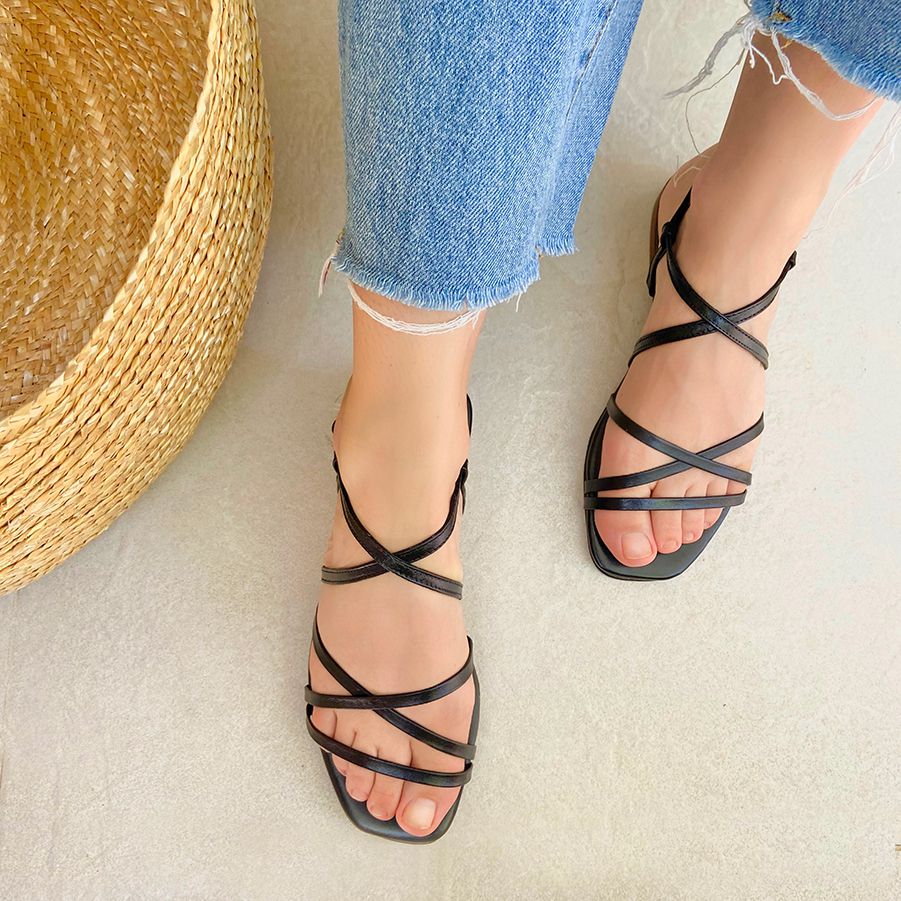 Rasteira Helena Preta Anas, delicada e confortável, a Rasteira Helena é nossa rasteira básica para todos os momentos do seu dia. Toda de couro, suas tiras finas envolvem o pé e seu solado se molda ao caminhar. É perfeita para usar com todos os estilos, desde saias e vestidos, até calças.