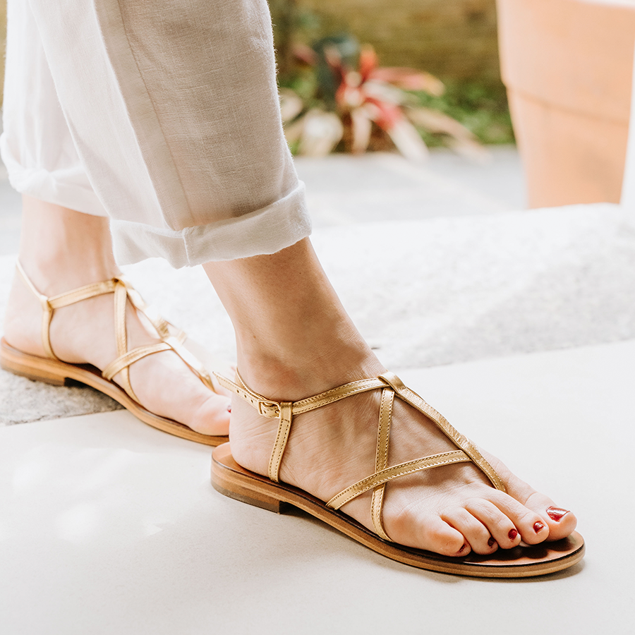 Nossa Rasteira Maria Dourada Anas é o modelo perfeito para compor com looks do seu dia-a-dia. Com calça, saia ou vestidos, tecidos leves e até mesmo um jeans, ela encaixa bem em qualquer produção. Com forro de camurça, o conforto é o ponto alto desse modelo. A palmilha e o solado são de couro, fazendo com que seu pé molde a sandália, deixando-a ainda mais confortável.