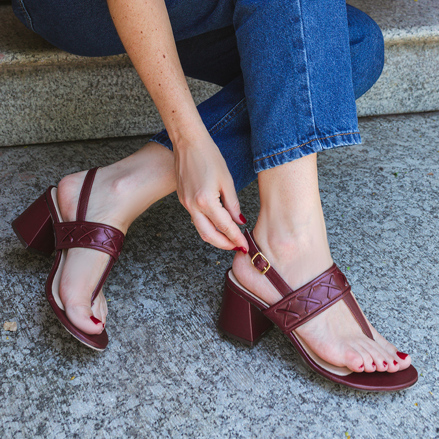 Novidade da nossa coleção de Verão, a Sandália Isabel Bordô Anas é perfeita para ser usada naquele casamento ao ar livre. Comfy & Chic, complementando as produções mais arrumadas. Com tira salomé e tira do peito do pé com charme do detalhe em X, palmilha acolhoada, esse modelo possui um salto super confortável pra você curtir a festa toda sem tirar do pé!