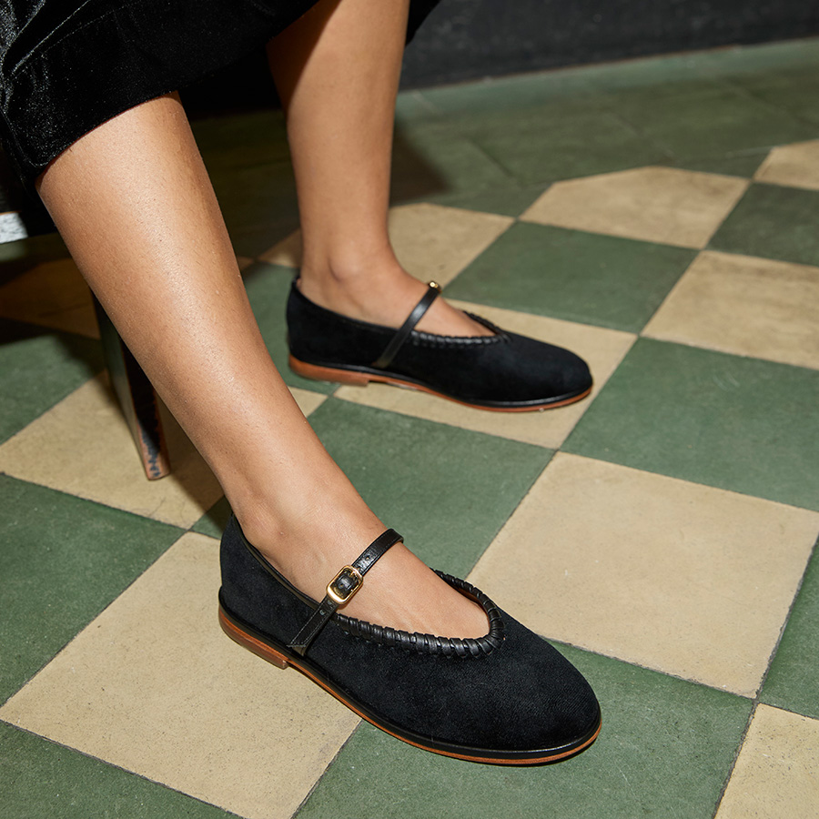 Nossa Sapatilha Bebel Preta Anas é super charmosa para os dias frescos do outono e inverno. Toda feita à mão e com cada detalhe pensado para o seu maior conforto: com uma tira delicada sobreposta, deixando o sapato ainda mais versátil. Forrado de tecido veludo preto e com palmilha acolchoada, é o modelo perfeito para passar o dia.